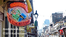 Boudreaux's Backyard restaurant features another of Bourbon Street's famous neon signs. 12-10