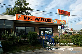 This orange building for Mr. Waffles appropriately stands out, especially for the sleepy travelers looking to get a good meal and coffee. 11-10