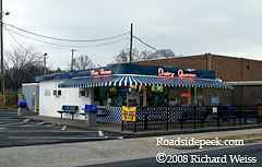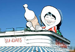 Here's an old Dairy Queen in Charlotte that features a rather large sign with an Eskimo character on the roof. 04-08