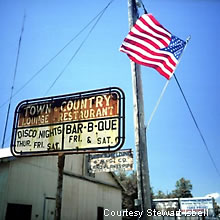 This old sign sits outside the Town and Country Lounge in Arkansas. Make sure you're around for the disco nights.