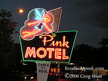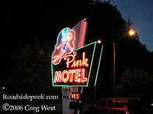 The Pink Motel features a sign is still a real eye-catcher for travelers passing through, especially at night. This sign hearkens back to the day when unique neon signs used to grace various roadside towns, competing for the hard earned dollar of the weary driver. 08-06