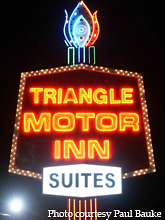The Triangle Motor Inn sign lights up travelers on US