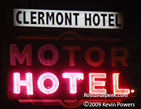 (Far right) Another of the neon signs showing off the Clermont Motor Hotel