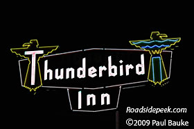Check out the neon sign at the Thunderbird Inn in Savannah, GA. This Savannah location features another great "Thunderbird" themed motel sign with full neon depictions. 04-09
