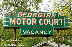 Here's an old sign for the Georgian Motor Court. This roadside gem located in Cordele, GA shows off its classic colors and neon lettering. 11-08
