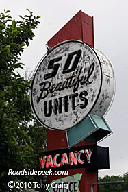 Check out this old roadside sign for the Polk Motel. Found in Columbia, TN, this sign call out its "50 beautiful units" while the neon vacancy letters call out that there are rooms available. 11-10