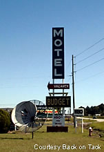 The Budget Motel with its pretty tall vertical neon marquee is