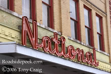 Not quite sure what type of business this is, but the lettering for the National in Pulaski, TN looks like it was neon once upon a time. 06-06