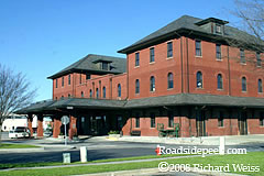 Salisbury, NC is home to this old Salisbury Train Station which was used in Leatherheads that had been filmed in the Carolinas in early 2007 (the scene was on the track side). A local fellow was telling me that they brought in not only a steam locomotive for the filming, but because it was a fall (football) season film they drilled holes all over the area and trucked in a bunch of fake fall colored trees.