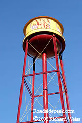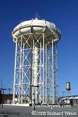 Here is the water tower at Thomasville, NC. It is just about as big and solidly built as they come and loaded with rivets and a spiral staircase going up the middle to boot. You can not miss this thing driving through Thomasville aka "chair city". It is about a block away from the giant Thomasville chair that sits in a park in the center of town. It may not be as large as the massive one in Charlotte, but it is impressive in scale none the less. 02-08
