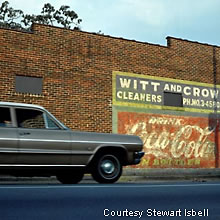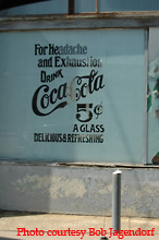 and Crow Cleaners as well as a Coca-Cola sign on the wall.