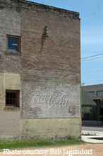 the Coca-Cola, as this brick building looks to be wasting away in the