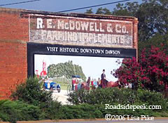 This old ghost sign for R E McDowell & Co advertises its farming implements and is found above a recently painted mural in Dawson, GA . 09-06