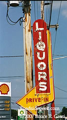 Don't let the bright red & yellow colors of the Drive-in Liquors sign confuse you, it's not part of the Shell gas station next door that sports the same colors on their sign. Wow, and to think back to 2005 gas was only $2.17! 06-07