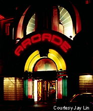 Here's a cool looking entrance facade made to resemble a vintage Wurlitzer jukebox. Yes, it's actually a jukebox as a building. It's a bonus that