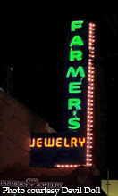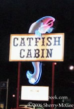 This neon sign advertises a favorite restaurant. Memphis is mainly known for it's BBQ, but catfish is a favorite also. The Catfish Cabin is located in the Airport area of Memphis. 07-06