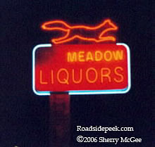 The Fox Meadow Liquors is located in the Fox Meadows area of Memphis. The "Fox" lettering is burned out in the sign. 09-06