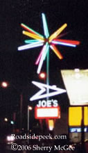 A revolving spiked neon ball that has been a fixture in front of Joe's Liquor Store for more years than I can remember.