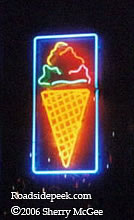 Found on the wall of the Dixie Queen is this neon sign for a multi-colored ice cream cone. 09-06