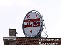 Here's a close-up look at the Dr. Pepper sign. The sign was recently restored along with the H&C sign on the same building. 08-08 |
