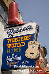 Along this busy section of Nashville, TN is the sign for Robert's Western World. 09-08