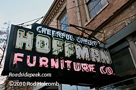 Check out this sign that graces the building at Hoffman Furniture Company. The neon letters really stand out as dusk starts to set on this overcast day. 12-10