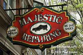 Check out the old sign for the Majestic Shoe Repair in Atlanta, GA. Although the sign for the Majestic is still visibly in good condition, the the site is now home to a deli. Another of Atlanta's old trade businesses has moved on. 04-09