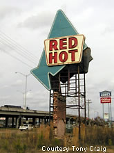 sign for Red Hot is located in a vacant lot. No idea