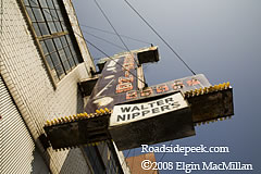 I bet when this neon fish sign at the Nashville Sporting Goods was newer, it was a sight to see driving down 8th street at night. It has a lot of broken tubing and the finish is quite weathered when this shot was taken. It was built by the Post Sign Co. 06-07