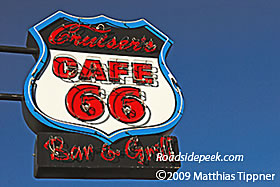 Check out this new marquee for the Cruiser's Cafe 66 in Williams, AZ. The cafe features a sign in the shape of a Route 66 shield. 01-09