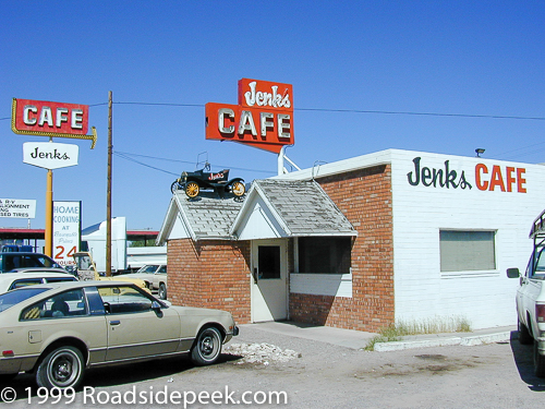 Jenk's Cafe was a well known 24 hour cafe located right off the I-10 along the Casa Grande Highway. The cafe could be counted upon for some late night pie and coffee as well as home cooked meals such as rib-eye steak and eggs for breakfast. Kids who clean their plates would join the Clean Plate Club and win a prize. The servers would call you honey just like the old days and the food portions are huge, fried, and covered in gravy. Jenk's Cafe was featured in Best of Tucson in 1995 as the best truck stop.