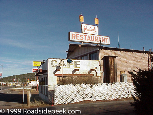 Here is the Hacienda Restaurant that sits along old Route 66 in Williams, AZ. The Hacienda Restaurant featured a cool sign when visiting in the late 1990s.