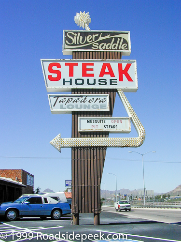 Check out the Silver Saddle Steakhouse sign. The Silver Saddle is known by locals as having really good steaks. In fact readers of the Arizona Daily Start voted the Silver Saddle the best steakhouse in Tucson in 2009. The Silver Saddle has been around since 1984. 09-21