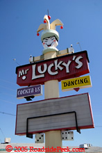 Lucky's. Check out the mischievous look on this roadside icon. Mr. Lucky's originally opened its doors in 1966 as Arizona's first gambling casino. It then became a country music night club. Unfortunately,
