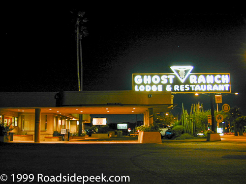 UPDATE 03/06 : The Ghost Ranch Lodge closed down in 2005 to become senior housing. Not sure of the fate of the grand neon sign. 03-06