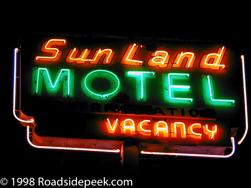 to weekly rates to survive. Check out the neon sign on this one. The Sun Land Motel opened in 1949 along the Miracle Mile.