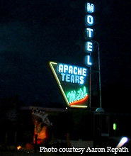 The sign for the Frontier Motel in Flagstaff still glows along busy Route 66. 12-05