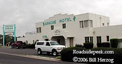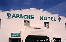 UPDATE 12/08 : November 29, 2008 saw the landmark Ghost Ranch Lodge catch fire, burning two buildings and partially burning the restaurant and lounge. Word is the fire may have been intentionally set and is being investigated by Tucson fire investigators and police. According to the Arizona Daily Star, the Ghost Ranch Lodge had been closed since 2005 after having been in business for over 60 years. After being sold to a new owner 2007, plans to convert the old motel to low-cost elder housing fell through earlier this year. 12-08