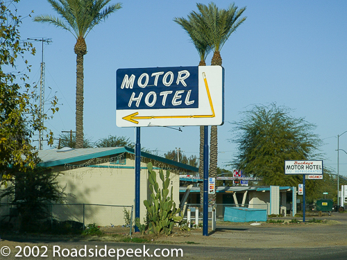 Here are a couple of angles showing the motel and sign for the Buckeye Motor Hotel in Buckeye, AZ. The motel still exists despite all of the development in the area in 2023, however the sign has been redone a bit. 06-23