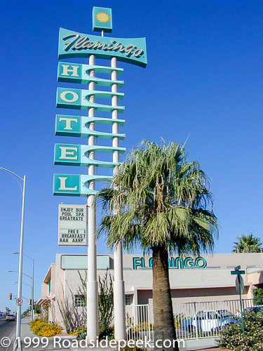Here's another view of the Flamingo Hotel was down the block. The Flamingo lettering on the hotel building is very distinct. 06-23