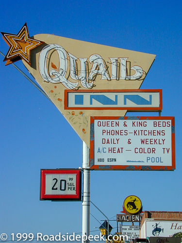The Quail Inn Motel was definitely open for business back when this photo was taken in the 90s. The sign and familiar color stood out along busy Oracle Road. The sign color has been blue for many years now.