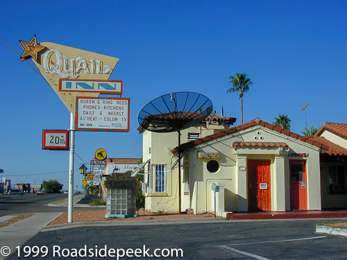 To the near right is another look at the Quail Inn. Looks like the satellite dish really stood out back in the day. 06-23