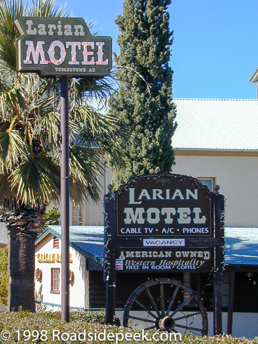 The Larian Motel was built in Tombstone in 1952. The motel has gone through about 3 ownership changes over the years and has around a dozen units. The motel's slogan is "Clean, comfortable, and convenient" and based upon reviews it appears to be that. 06-23