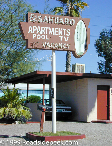 Tucson is home to the El Sahuaro Motel which had been converted to apartments when this photo was taken. . The motel building are still here however the sign is now gone. 06-23