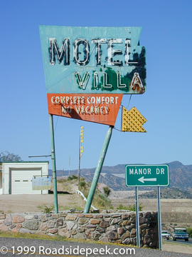 Check out this old roadside sign for the Villa Motel near Globe, AZ. The motel advertises complete comfort just off the main roadside. The motel used to be known as the Rose Villa Motel back in the day The motel appears to date back to the 1940s and used to call itself as the best for rest. 06-23