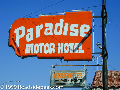 The Paradise Motor Hotel was once the Paradise Inn Motel. The motel is still there over 20 years later. The sign was painted blue then painted red again. 06-23