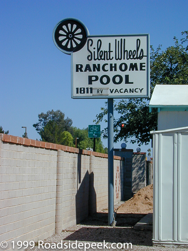 The Silent Wheels Ranchome used to be located at 1811 W. Prince Road in Tucson, AZ. The sign and the business are now gone. 06-23