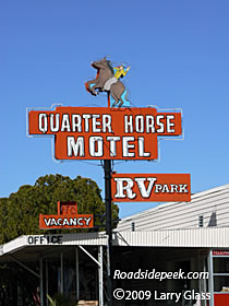 UPDATED 04/09 : The Quarter Horse Motel in Benson, AZ, just south of Tucson, has had its sign repainted in recent years. The "quarter horse" on the marquee still rears its head proudly off the Arizona roadside. 04-09