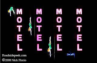 there are not just one but two fancy marquees. The animated diving woman sign always struck of irony since the motel swimming pool has been gone for several years.