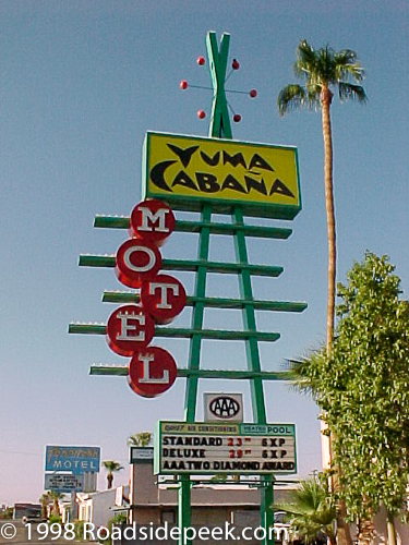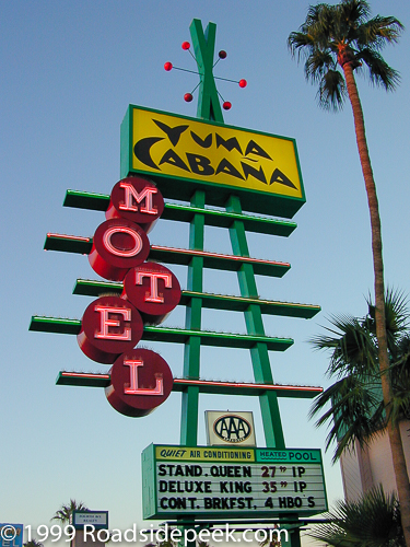 Yuma, Arizona - The Yuma Cabana Motel is a very well known location in Yuma due to the huge sign out front. The neon lettering and flashing lights are a can't miss destination for travelers to Yuma.